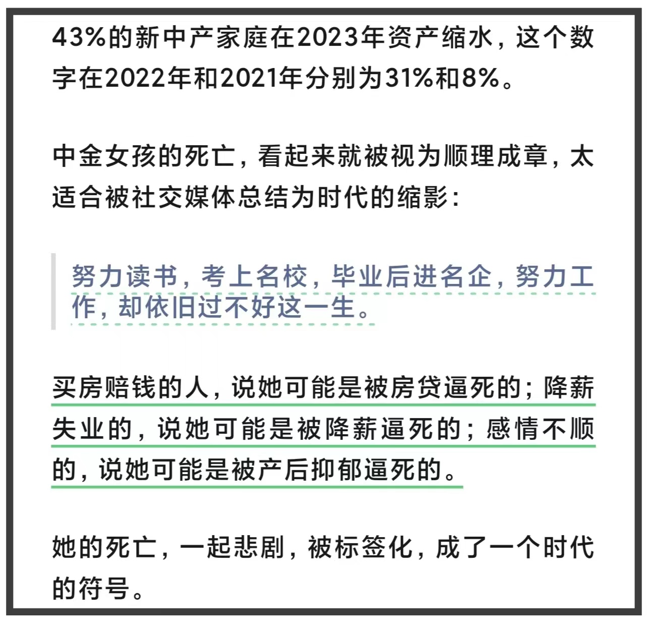 新冠疫情结束三年来,经济社会生活正发生深刻的变化。很多人正感受到,来自工作场所和家庭生活中的压力和超负荷,让自己不堪重负。前不久中金女员工的非正常死亡,就是芸芸众生中的一个示例。