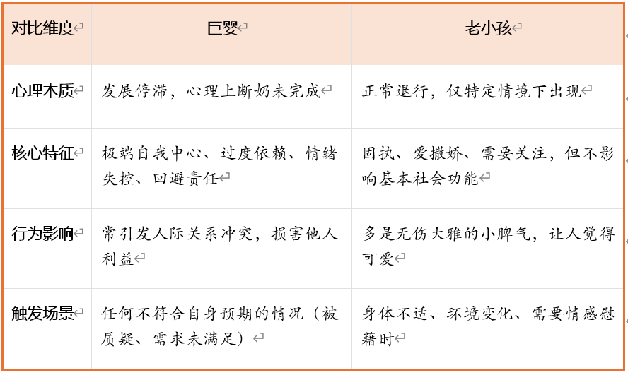 简单说,巨婴是“一直长不大”,老小孩是“偶尔装可爱”。搞懂这个区别,再回头看围绕该曾经的地产大佬的争议行为,就有了分析的框架。